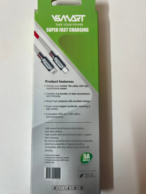 کابل تایپ سی به لایتنینگ وی اسمارت مدل VS-67 اورجینال